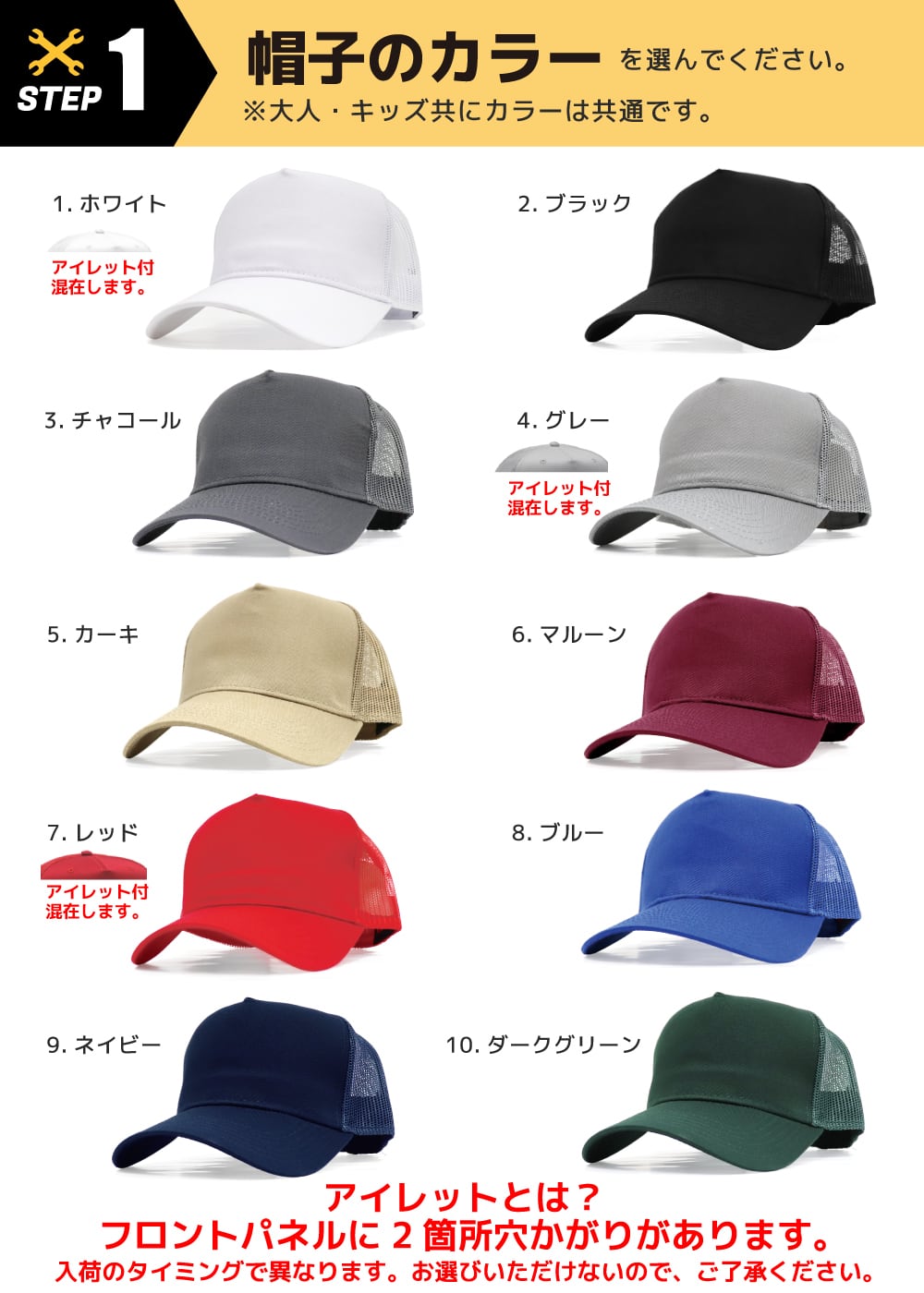 フロントの刺繍は帽子代に含まれておりますが、両サイドと後ろへの刺繍はオプションとなり、一か所につき+550円追加となります。