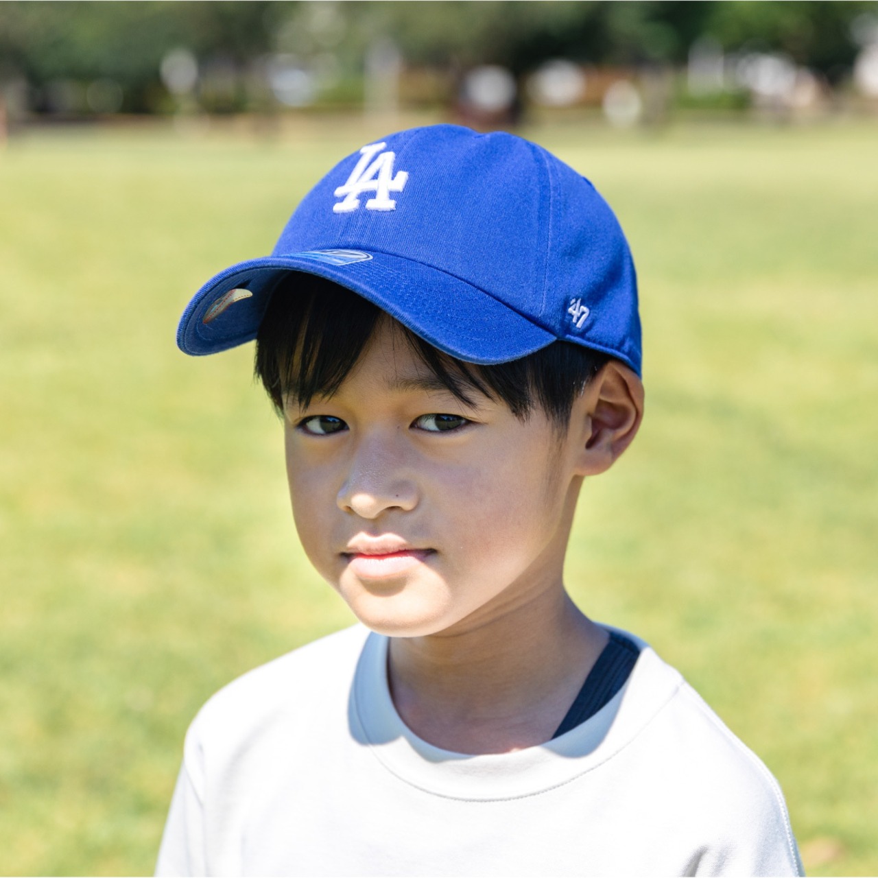 MLB公式ロゴの’47 キッズキャップ。軽くてかぶりやすい、親子コーデにも◎