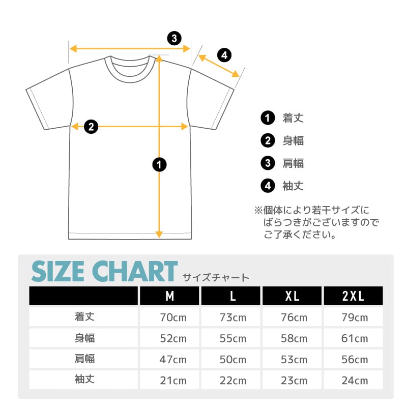 M:着丈:70cm 袖丈:21cm 身幅:52cm