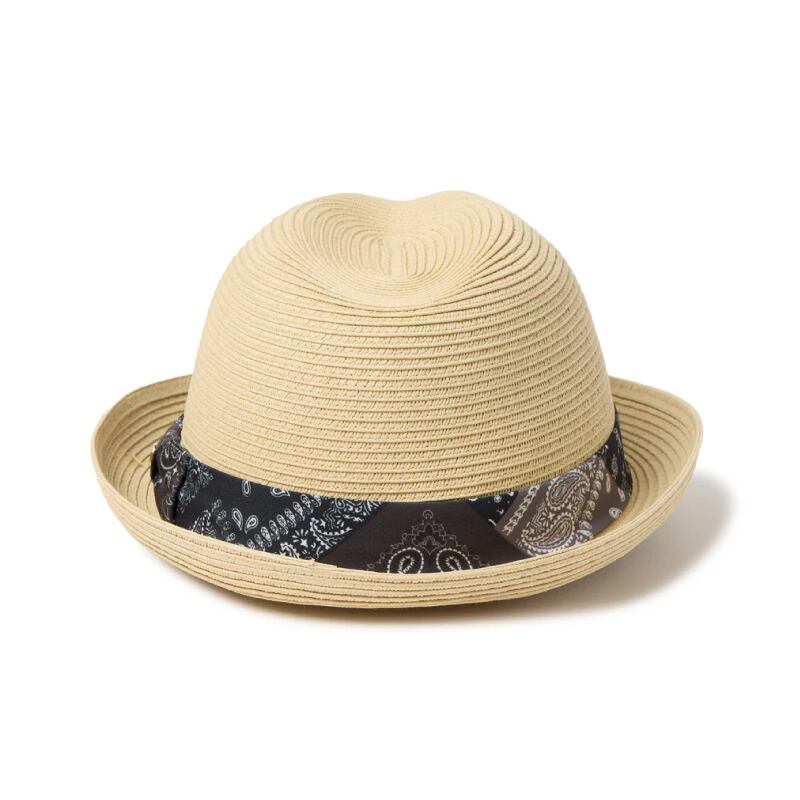 ニューエラ NewEra ハット フェドーラ ペイズリー柄 バンダナ柄 中折れハット メタルバッジ ナチュラルペーパー グログランバンド メンズ レディース 麦わら帽子 夏