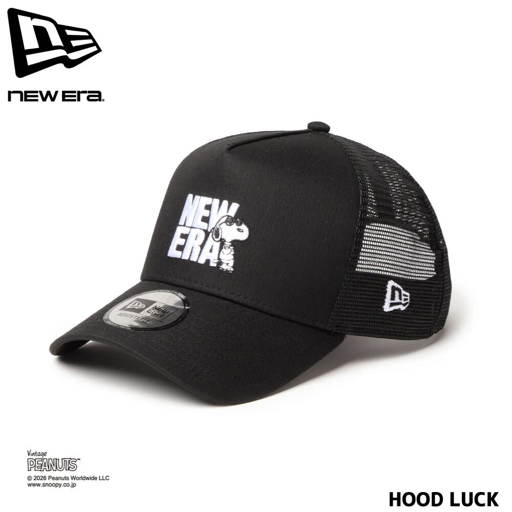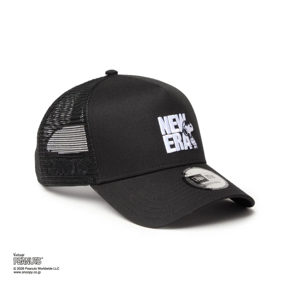 ニューエラ メッシュキャップ コラボ スヌーピー ピーナッツ NEW ERA 9FORTY A-Frame トラッカー Vintage PEANUTS ピーナッツ JOE COOL ジョー・クール ブラック メンズ レディース 夏用