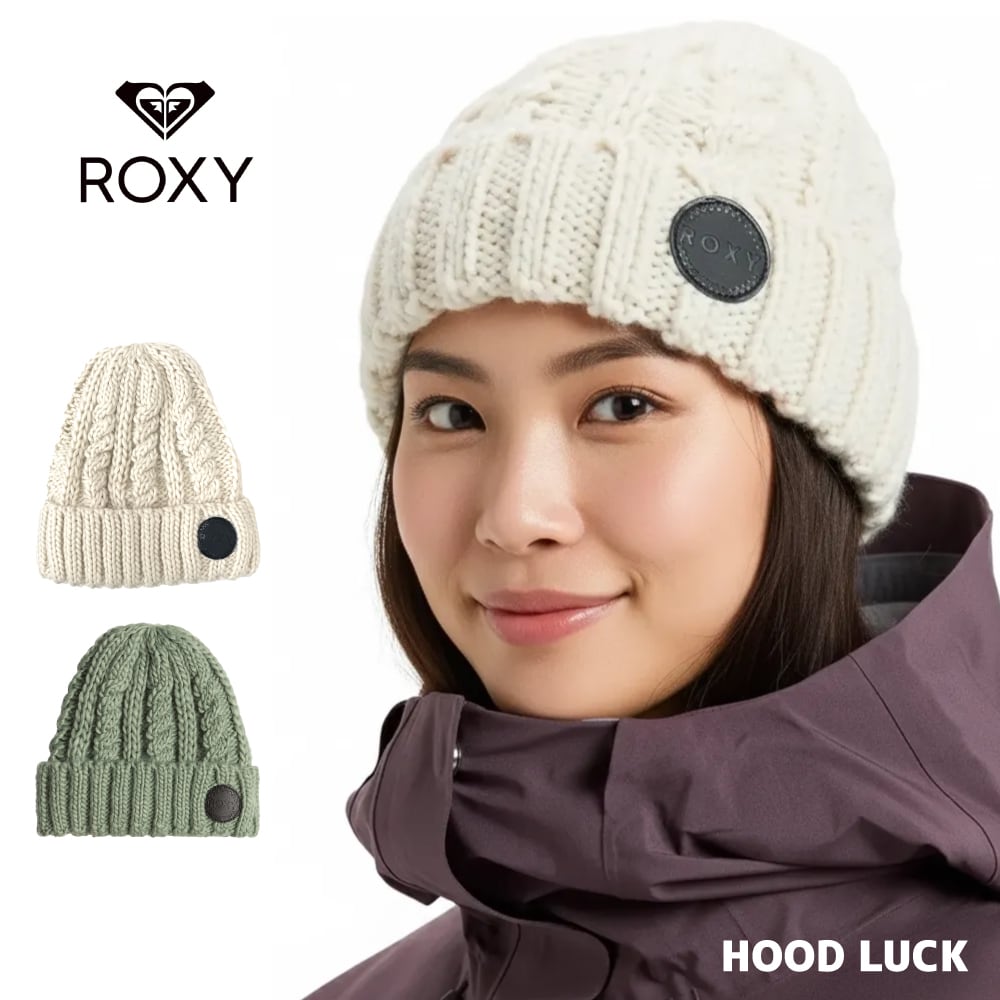 ロキシー ニット帽 ニットキャップ ハーフフリースライナー付き Roxy TRAM BEANIE レディース 女の子 スキー スノーボード かわいい ざっくり リブ編 冬 雪山 | HOOD LUCK a.k.a ガリュウクラフト
